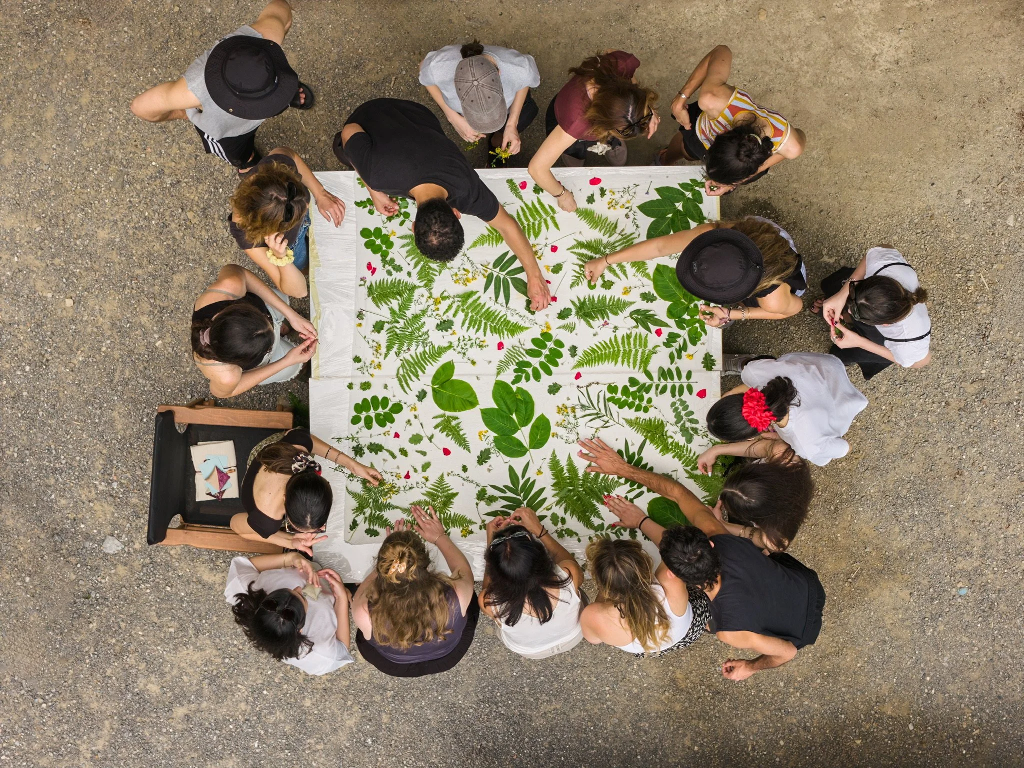 We began by wandering through the forest, foraging natural dye plants and observing the subtle colors and textures of the Arcadian landscape. This act of gathering became the foundation of the workshop—slowing down, paying attention, and engaging with nature as both inspiration and material.